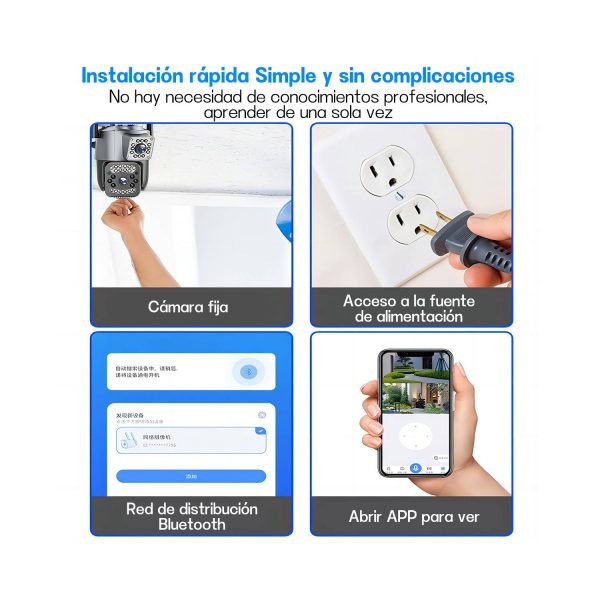 Cobertura panorámica de 360° y visión nocturna inteligente: Ofrece una cobertura de 360° con un amplio ángulo de visión horizontal y vertical. Además, tiene visión nocturna con luces LED que permiten una visión de alta calidad incluso en la oscuridad. La cámara puede detectar la presencia de personas y seguir su movimiento, y recibirás alertas en tiempo real en la aplicación móvil.